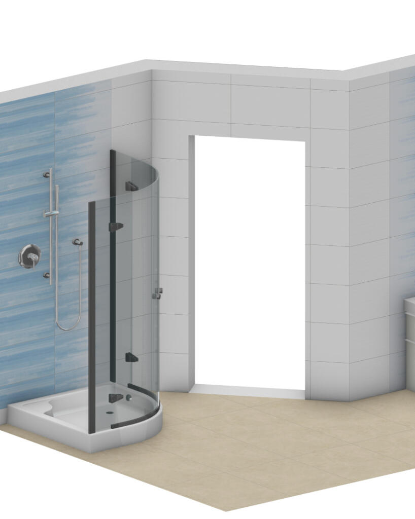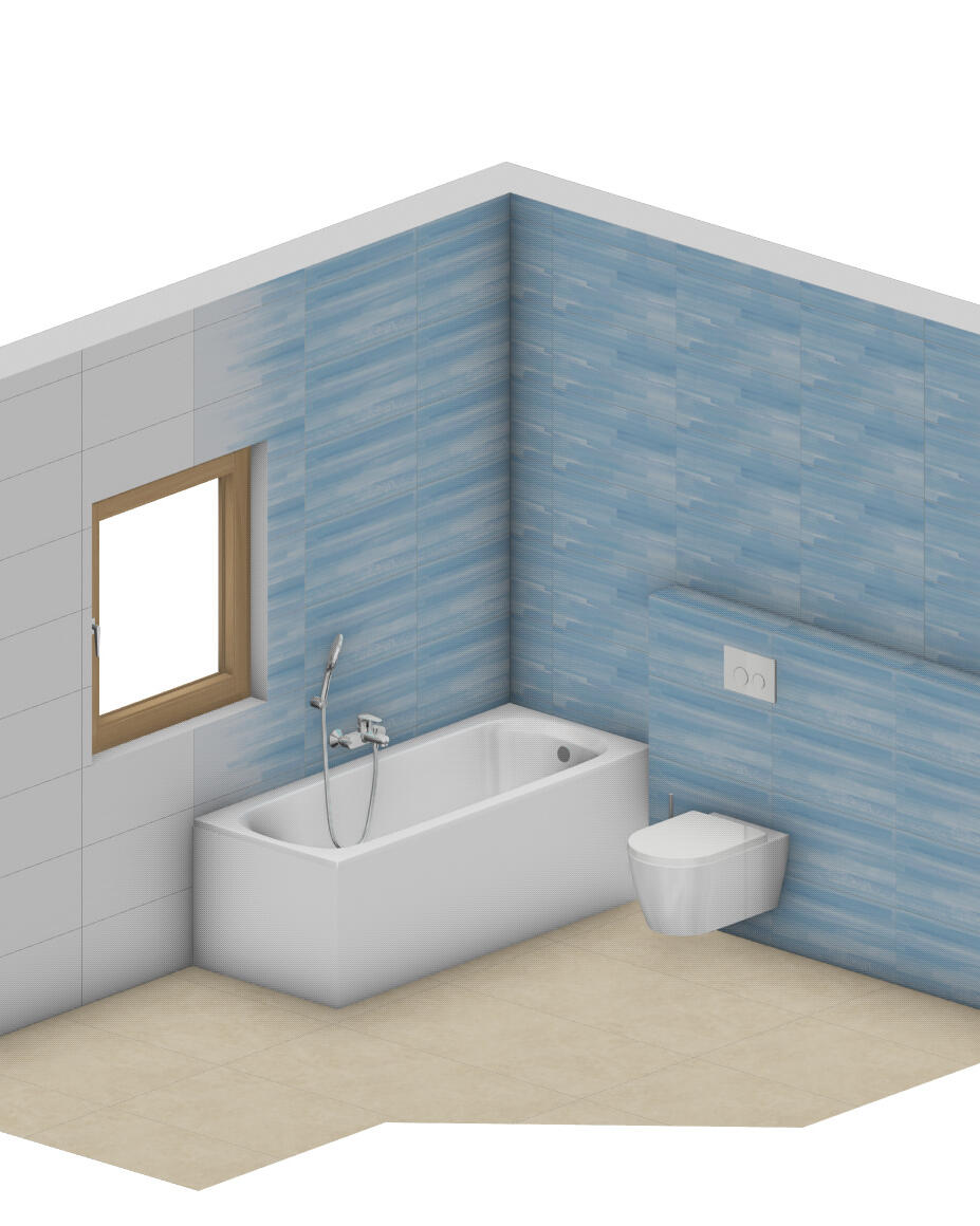 IIn Warmbronn durften wir unsere 3D CAD Planung, in die Realität umsetzen. Verbaut wurde hier die Steuler Brush Serie in Bavaria Blau im Format 30x60 kombiniert mit 60x60 Feinsteinzeug Fliesen von Atlas Concord im warmen Erdton. An Ablage WC und Waschtisch wird noch Echtholz verbaut.