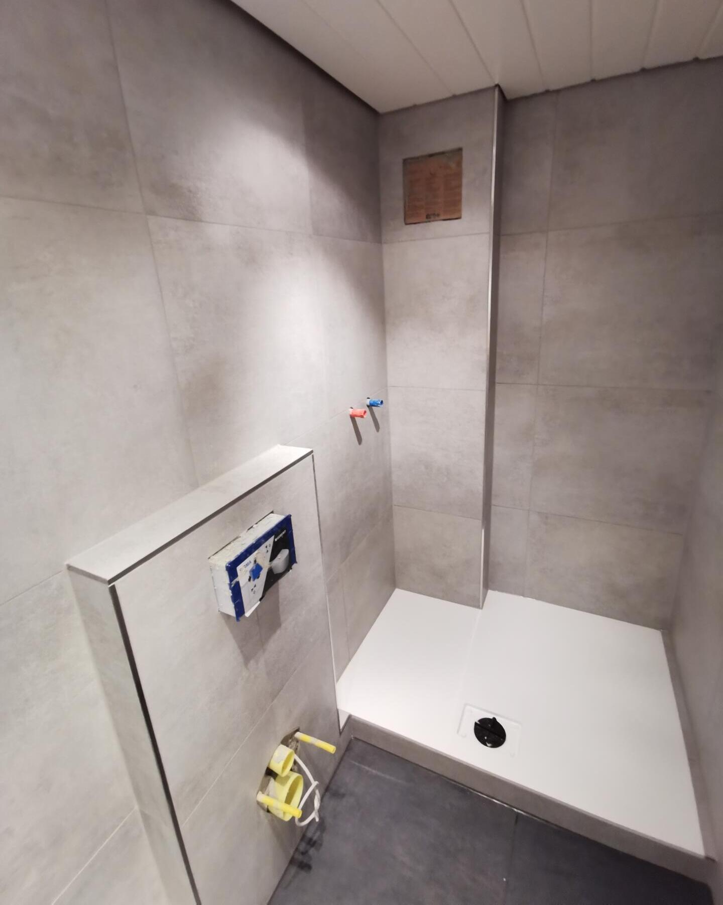 Dusche und Flur Boden Betonoptik Fliesen Verlegung Renningen