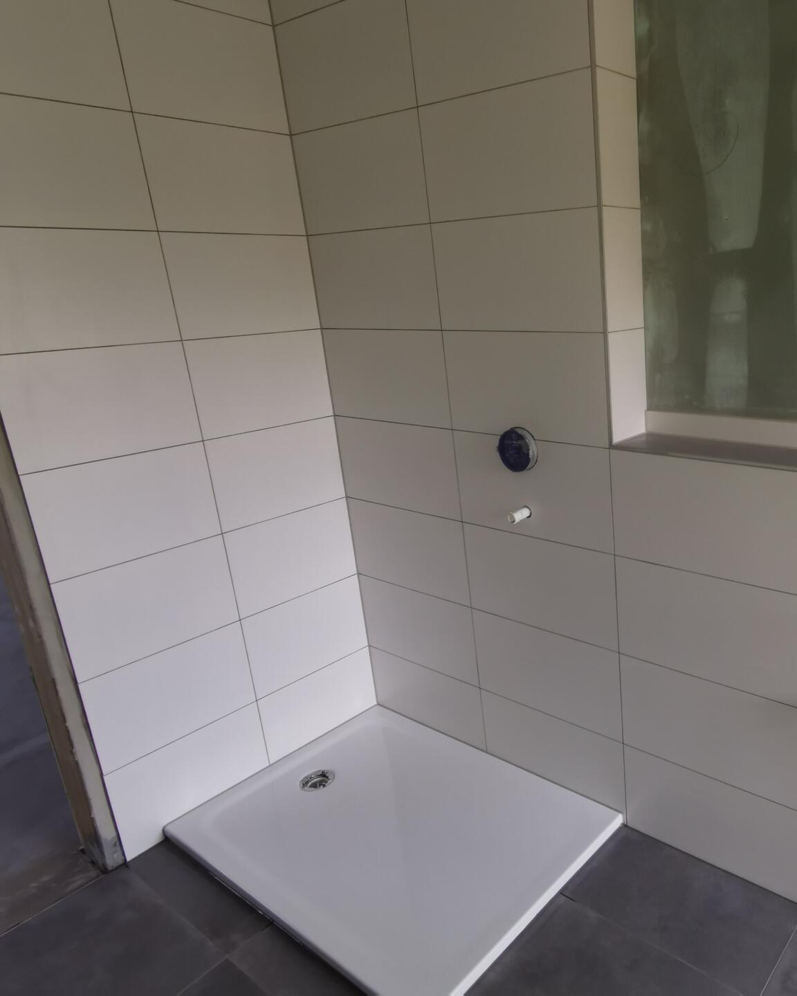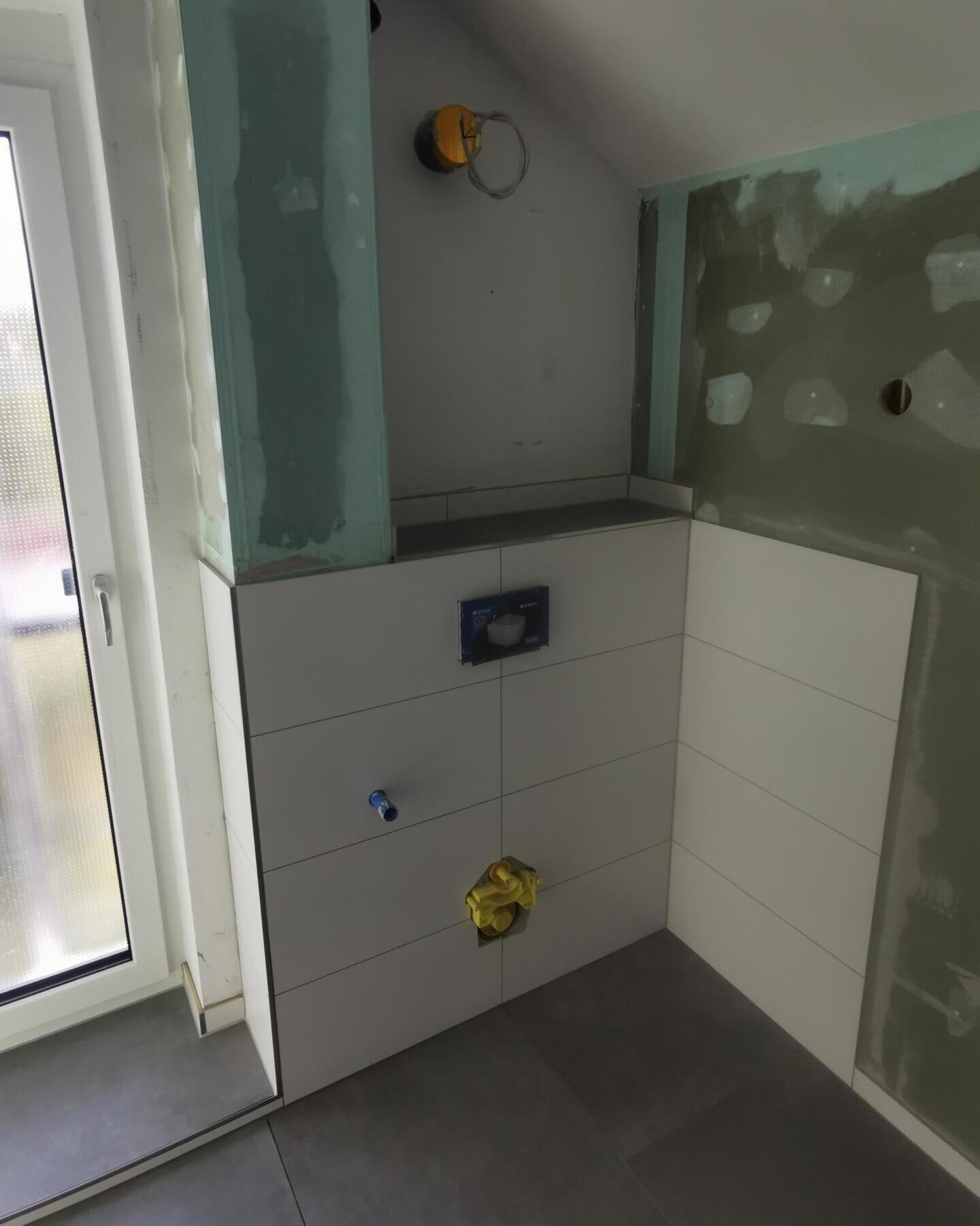 Im Zuge einer Modernisierung eines Einfamilienhauses, wurde das komplette Dachgeschoss zum Wohnraum ausgebaut. Im Zuge dessen, verbauten wir zeitlose Fliesen in uniweiss und anthrazit.Für die optische Unterbrechung haben wir die 60x60 Betonoptik Fliesen auf der Ablage verbaut.